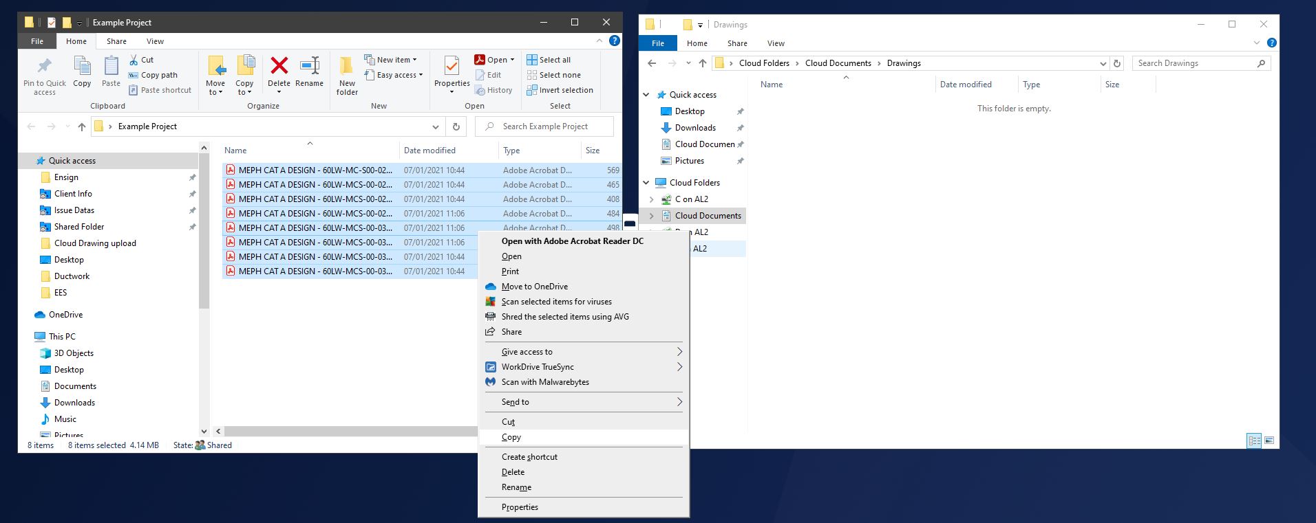 You can use the mouse or keyboard shortcuts to copy and paste them onto your cloud storage location.
